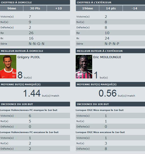 Les cotes : Valenciennes : 1.83 - Nul : 3.00 - Nice : 4.20