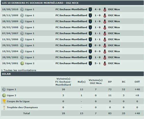 Les cotes : Sochaux : 2.40 - Nul : 2.95 - Nice : 2.90