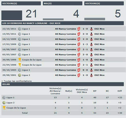 Nancy, la bête noire du Gym. On se souvient toujours de la finale perdue de la Coupe de Ligue en 2006 mais c'était un autre époque. Nice Matin indiquait cette semaine que la pelouse synthétique ne réussit pas aux niçois avec une seule victoire... ok mais nous n'avons vu, dernièrement, que les stats ne veulaient plus rien dire. A St-Etienne nous restions sur plusieurs victoires et contre Montpellier sur beaucoup de contre-performances... Que s'est-il passé? Quoiqu'il en soit le Gym doit, s'il veut creuser l'écart face aux 6ème, faire une belle perf à Nancy. Réponse vers 16h...