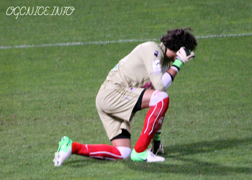 Penalty de Monzon... Les supporters niçois montent aux grillages... Manque de chance trop haut, Monzon tape la barre transversalle... Que l'année ne va pas être simple!