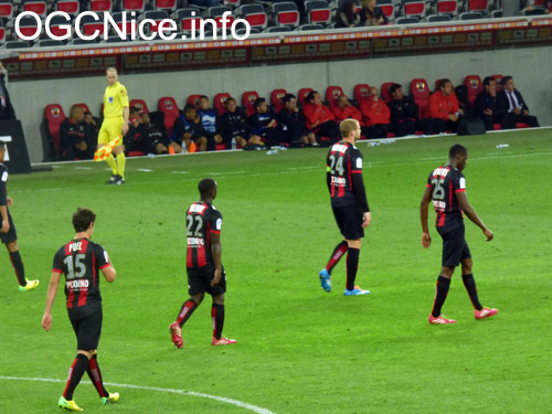 Nice : Ospina - Puel, Genevois, Bodmer (cap), Kolodziejczak - Pied (Brüls 66'), N. Mendy, Eysseric, Abriel, Bauthéac (Honorat 66') - Maupay (Amavi 84'). Entraîneur : Claude Puel.