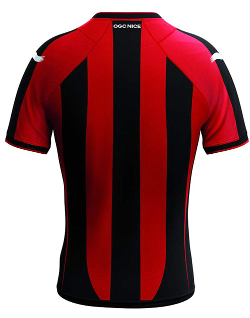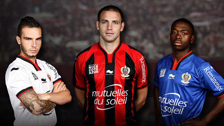Découvrez les 3 nouveaux maillots 2014/2015 de l'OGC Nice où nous pouvons constater que les bandes rouges et noires sont plus larges. Le col a changé. Le Gym n'oublie pas ses 110 ans avec un rappel en dessous du logo.