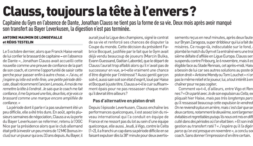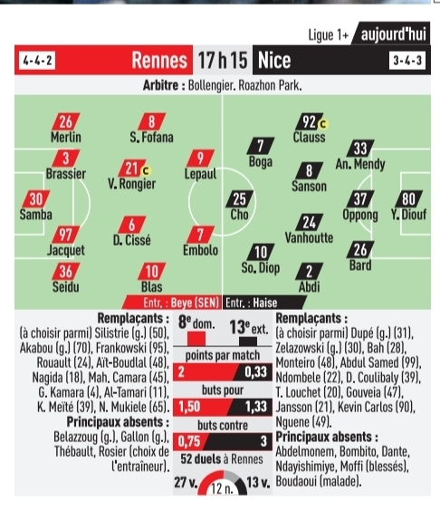 Tout le monde est opérationnel : on est content d’avoir le groupe dans sa globalité, avec des retours à 100 % sur l’entraînement. Ça nous permet d’avoir un groupe plus étoffé. Frankowski et Kamara se sont entraînés à 100 % avec le groupe, ce vendredi. C’était l’objectif pour nous en milieu de semaine pour qu’ils soient à 100 % pour travailler" dixit Habib Beye.
