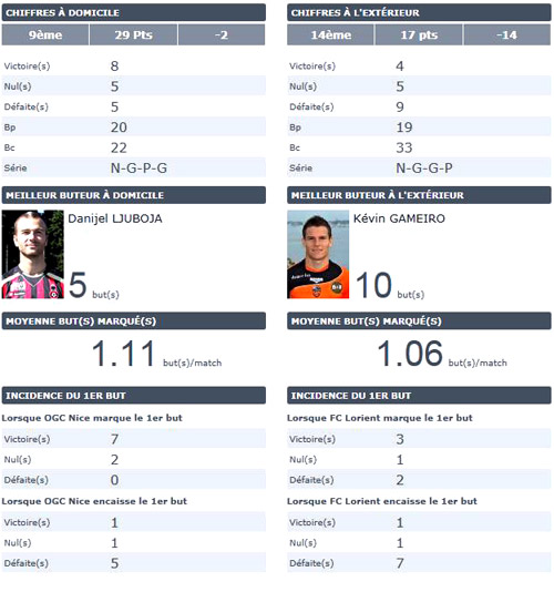 Les cotes : Nice : 1.70 - Nul : 3.30 - Lorient : 4.00