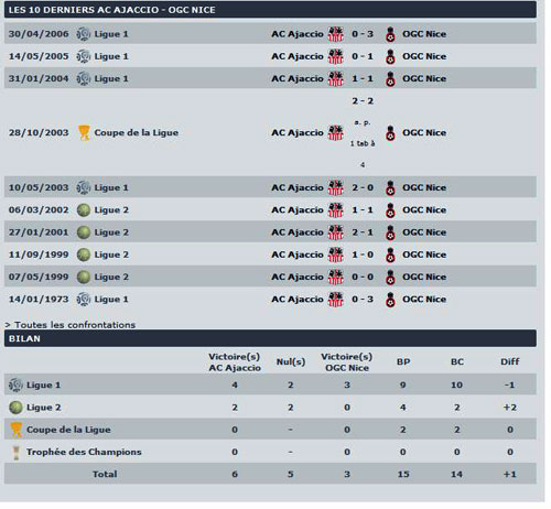 Les cotes : Ajaccio: 2.30 - Nul : 2.90 - Nice : 3.00