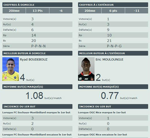 Les cotes : Sochaux : 2.25 - Nul : 2.75 - Nice : 2.90