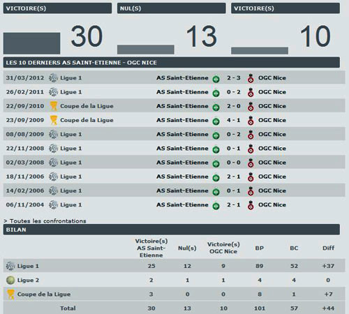 Les côtes : Saint Etienne : 1.71 - Nul : 3.00 - Nice: 4.10